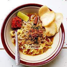 8. Ambil secukupnya mie masukkan ke mangkuk kemudian tambahkan tauge, dan tambahkan kuahnya, masukkan bawang goreng dan daun sop.